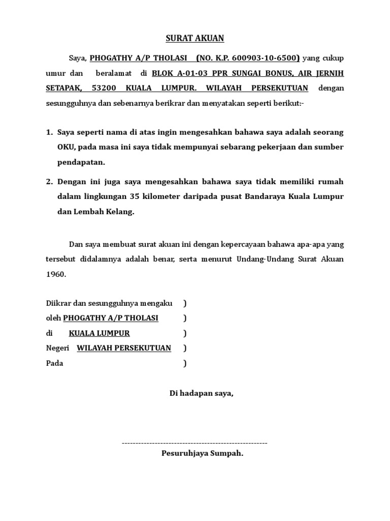 Surat Akuan Sumpah Tidak Memiliki Rumah Letter 7saudara Com